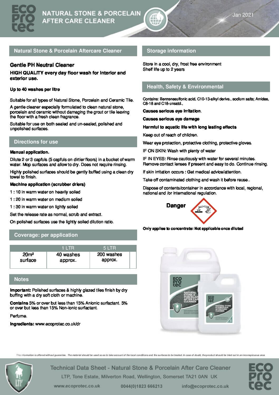 ECOPROTEC Natural Stone & Porcelain Aftercare Cleaner is a high‑quality, pH‑neutral cleaner designed for everyday maintenance of natural stone, porcelain, and ceramic surfaces. Its gentle formula cleans effectively without damaging tiles or grout, leaving floors with a fresh, clean fragrance. Suitable for both sealed and unsealed surfaces, this cleaner is ideal for routine use in homes, commercial spaces, and outdoor areas.