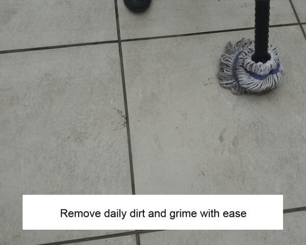 - Regular sweeping and mopping recommended