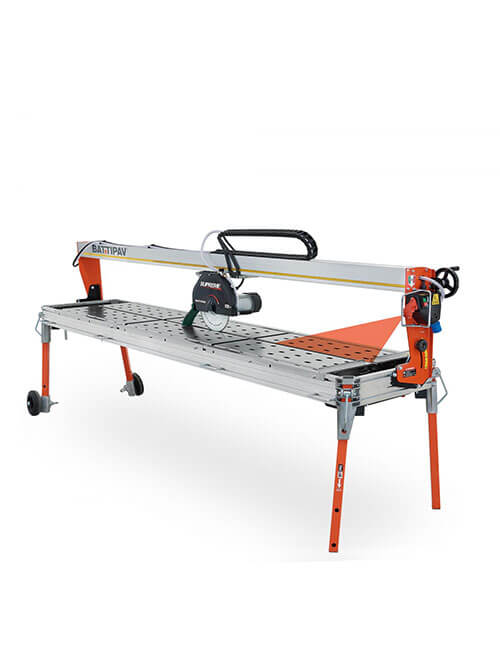 Equipped with advanced safety features—including thermal and amperometric protection, release‑coil switch, and overheat reset—the SUPREME series is engineered for reliability in demanding stone‑processing environments. It operates with a Ø300 mm diamond blade (not included) and is available in multiple lengths and motor configurations.